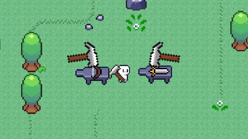 Farm, fish, build, and craft in a cozy village, or dive into the dungeon to battle enemies in a bullet hell environment.